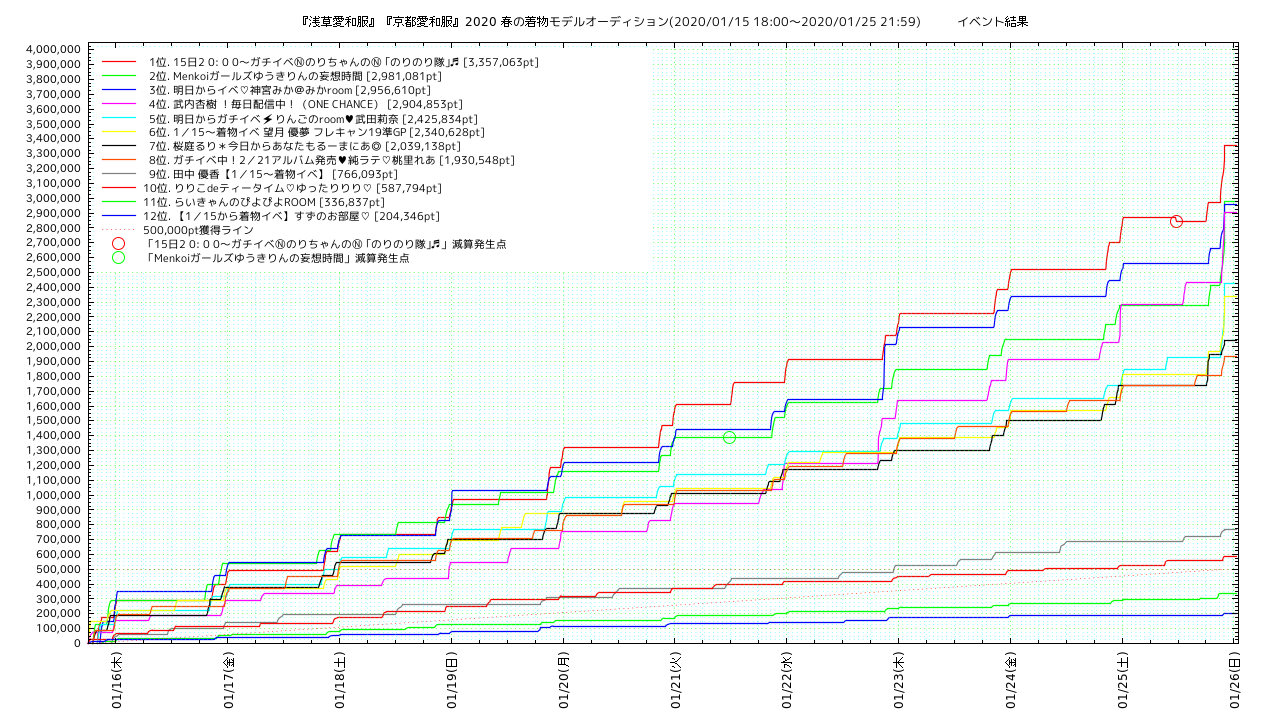 減算発生日時: 2020/01/25 11:37:02, 減算後ポイント: 2844066 (28164ポイント減算)
