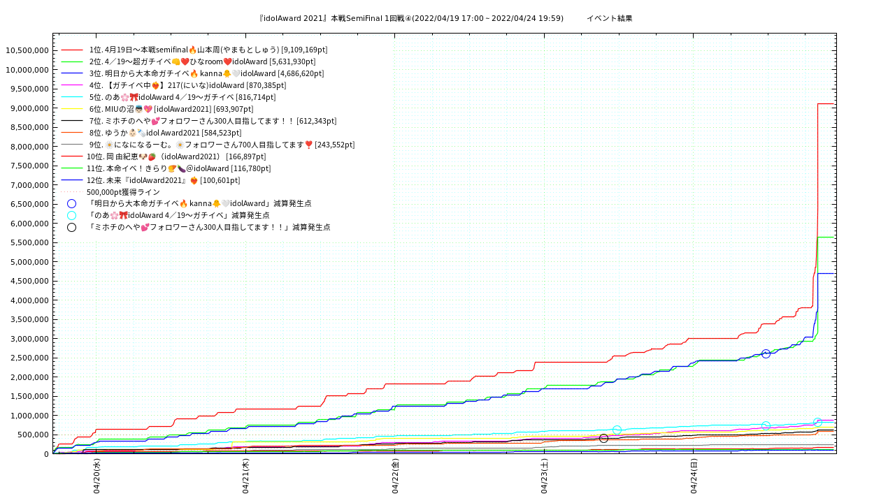 減算発生日時: 2022/04/24 20:00:27, 減算後ポイント: 816714 (8136ポイント減算)