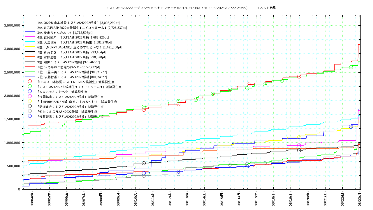 減算発生日時: 2021/08/17 11:39:02, 減算後ポイント: 2244021 (6996ポイント減算)