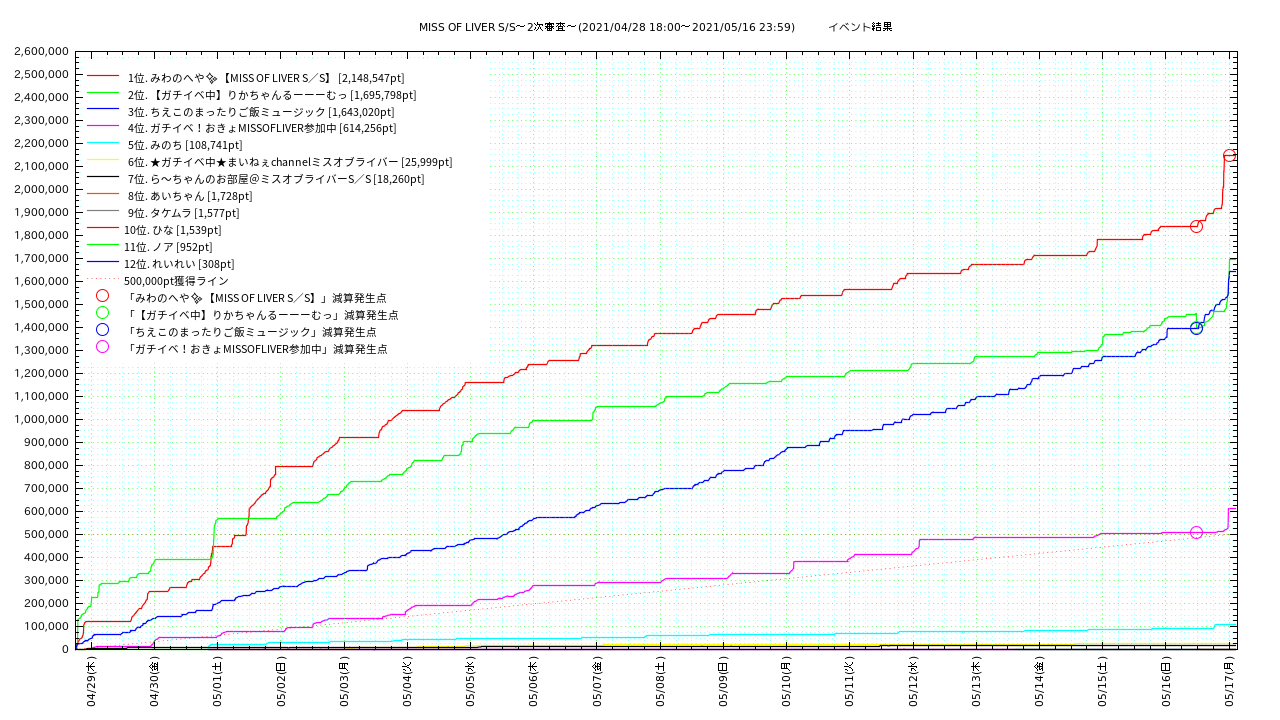 減算発生日時: 2021/05/17 00:01:19, 減算後ポイント: 2148547 (50ポイント減算)