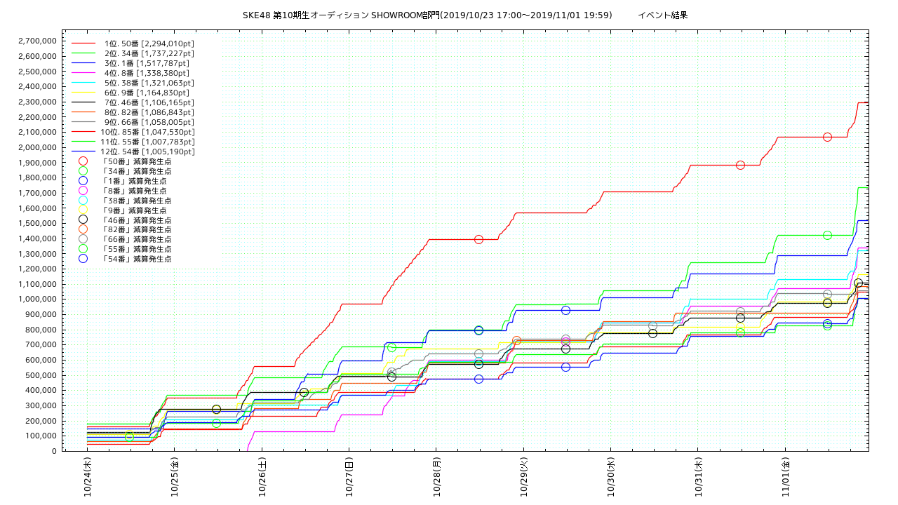 減算検出日時: 2019/10/31 11:38:10, 減算後ポイント: 510536 (67ポイント減算)