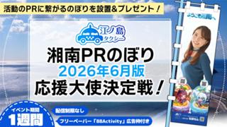 湘南PRのぼり2026年6月版応援大使決定戦! | enoshimataxi_pr21 | NO | NO | 0 | 0 | 9,S,A,B,C | 3 | 2026/04/06 18:00:00 | 2026/04/26 21:59:59 | 42161 | 103 | NO | NO | NO | YES | 2026/03/30 16:46:05 | 開催中 | Level (quest) | 27 | |||