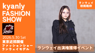 【ランウェイ初挑戦枠】kyanly主催ファッションショーランウェイ出演権獲得イベント! | kyanly-model2605new | NO | NO | 0 | 0 | 9,S,A,B,C | 3 | 2026/04/06 18:00:00 | 2026/04/26 21:59:59 | 42216 | 103 | NO | NO | NO | YES | 2026/04/01 15:43:18 | 開催中 | Level (quest) | 38 | |||