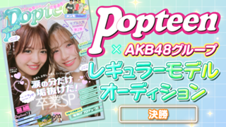 【決勝】AKB48グループ×Popteenレギュラーモデルオーディション | popteen_akb48g_model | YES | YES | 10001 | 10000 | 全ランク(S,A,B,C,N,アマチュア) | 1 | 2025/11/21 17:00:00 | 2025/11/28 19:59:59 | 40128 | 902 | NO | NO | NO | 0D 22:43:03 | YES | 2025/11/26 13:18:36 | 開催中 | ランキング (ranking) | 7 | ||