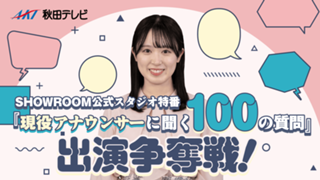SHOWROOM公式スタジオ特番『現役アナウンサーに聞く100の質問』出演争奪戦! | ak_studio2025 | YES | NO | 0 | 0 | 9,S,A,B,C | 2 | 2026/01/05 18:00:00 | 2026/01/25 21:59:59 | 41228 | 103 | YES | NO | NO | YES | 2026/01/06 18:40:46 | 開催中 | レベル (quest) | 0 | |||