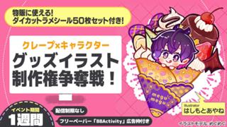 はしもとあやね先生が描く、クレープ×キャラクターグッズイラスト制作争奪戦!vol.3 | enaya5 | NO | NO | 0 | 0 | 9,S,A,B,C | 3 | 2025/10/27 18:00:00 | 2025/11/16 21:59:59 | 40756 | 904 | NO | NO | NO | YES | 2025/10/16 18:19:53 | 開催中 | レベル (quest) | 20 | |||