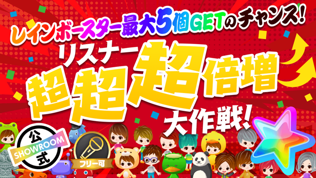 リスナー『超超超』倍増大作戦!ルーム視聴だけでレインボースターGET?!vol.261 | listenerupupup_showroom261 | Target:AllLivers | レベル | 3 |