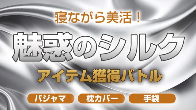 寝ながら美活!魅惑の『シルクアイテム』獲得バトル | silkpajamas | AllLivers | 3日以上 | レベル | 40 |