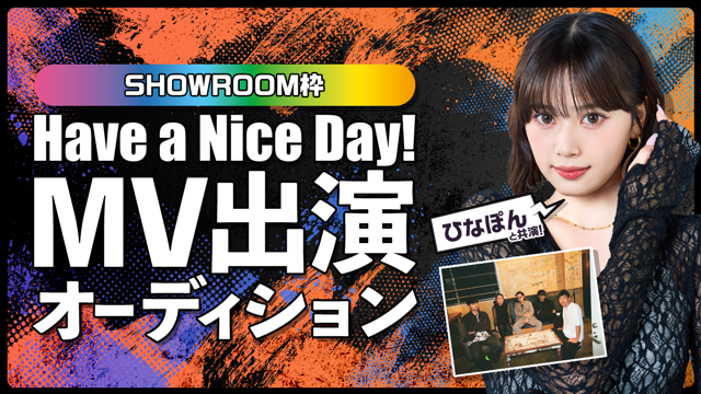 【SHOWROOM枠】「Have a Nice Day!」MV出演オーディション | habanaimv_sr | AllLivers | 3日以上 | レベル | 19 |
