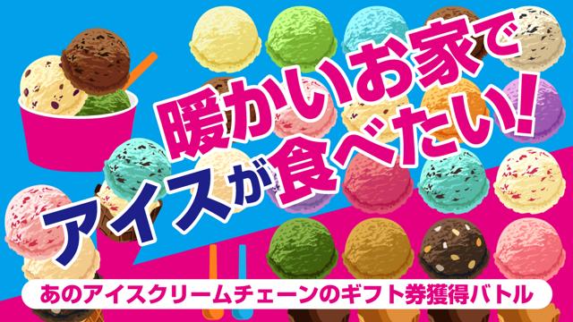 暖かいお家でアイスが食べたい!―あのアイスクリームチェーンのギフト券獲得バトル― | delicious_icecream03 | AllLivers | 1日以上 | レベル | 30 |