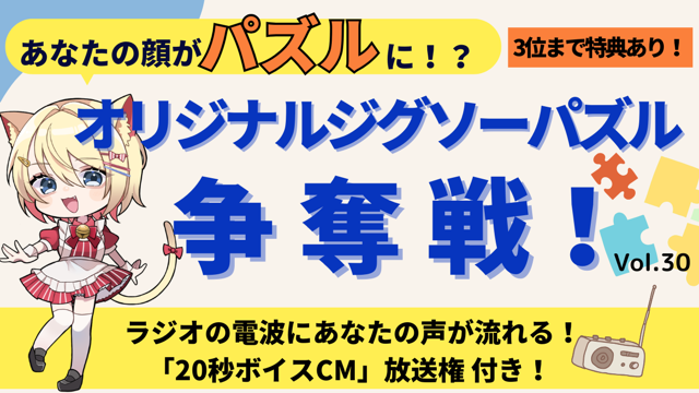 あなたの顔がパズルに!?オリジナルジグソーパズル争奪戦!!Vol.30 | puzzle30 | AllLivers | 3日以上 | レベル | 48 |