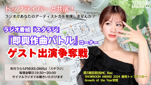 ラジオ番組「スタラジ」「大盛愛子のやる気ごはん🍚」コーナーゲスト出演争奪戦7 | staradi202602-1guest | AllLivers | 1日以上 | レベル | 32 |