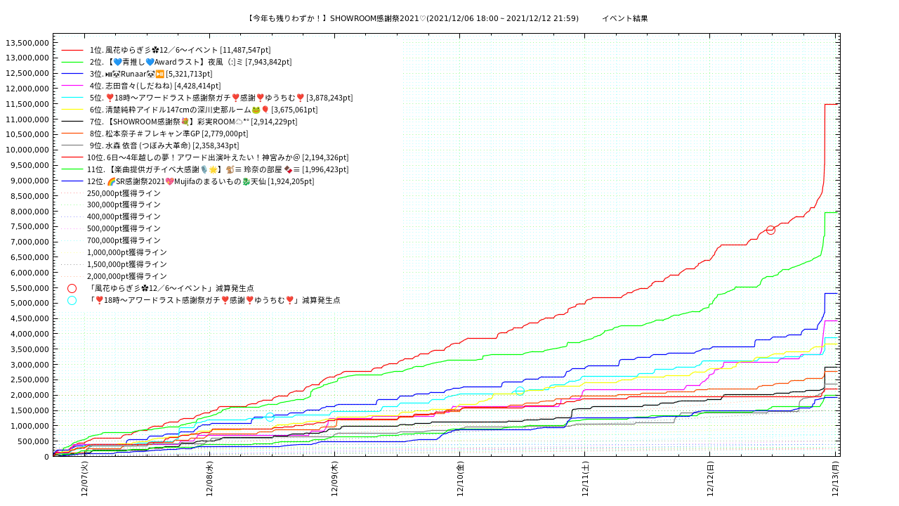 減算発生日時: 2021/12/10 11:38:17, 減算後ポイント: 2136281 (12ポイント減算)